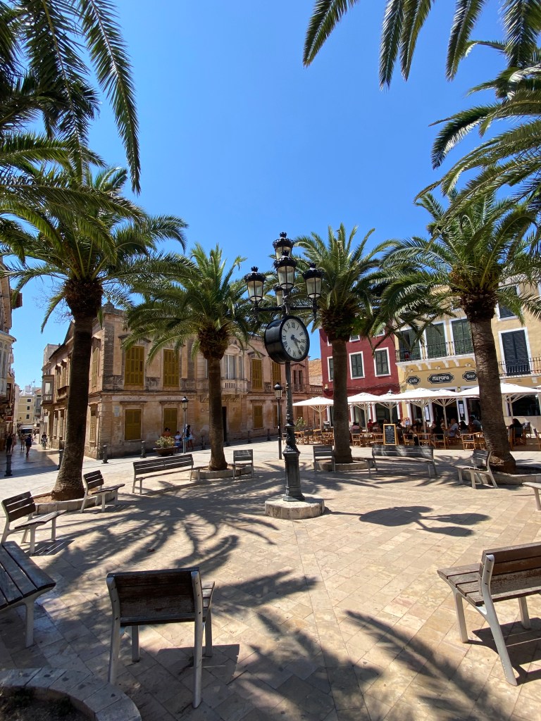 En début d’après midi, nous avons pris en tout 3 bus pour nous rendre à Ciutadella, ce qui nous a pris à peine plus d’1 heure. On a adoré se promener dans les petites ruelles pavées, admirer les façades colorées et les petites boutiques. Les bâtiments historiques lui donnent un charme fou. On en a profité pour manger une glace parce qu’il faisait bien chaud et bien sûr, acheter des maillots de bain !