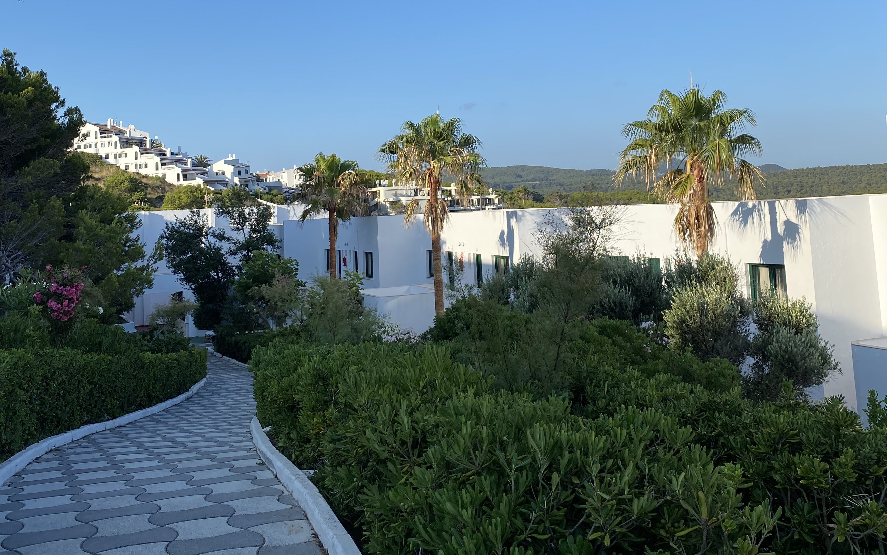 Nous cherchions un hôtel assez central par rapport à l’île de façon à ne jamais avoir beaucoup de trajet selon là où on voulait aller. Nous avions donc réservé un hôtel pas ouf mais qui rentrait dans notre budget de dernière minute. A savoir que le prix des hôtels à Minorque en été ne sont pas donnés. Finalement, notre hôtel étant fermé nous avons été « surclassé » dans un autre établissement à quelques mètres de notre hôtel d’origine, l’Apparthôtel Beach Club à Son Parc.